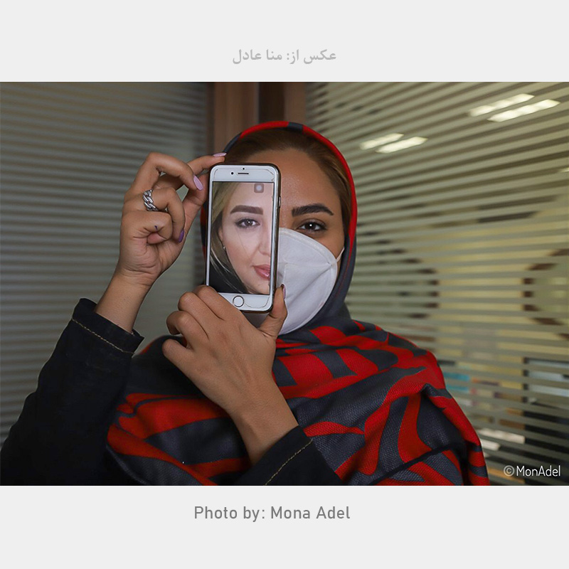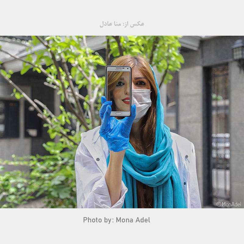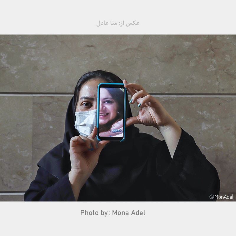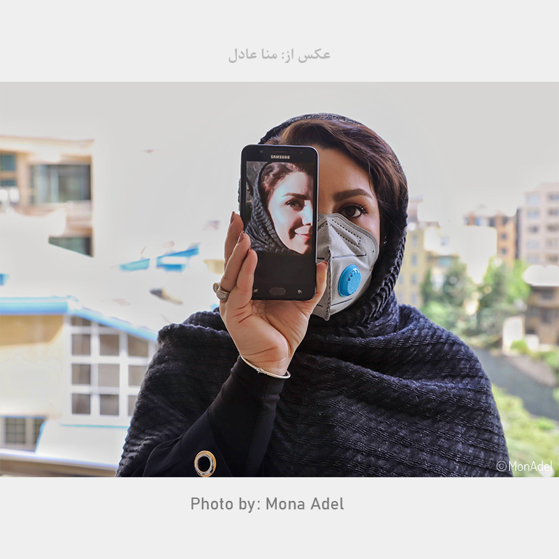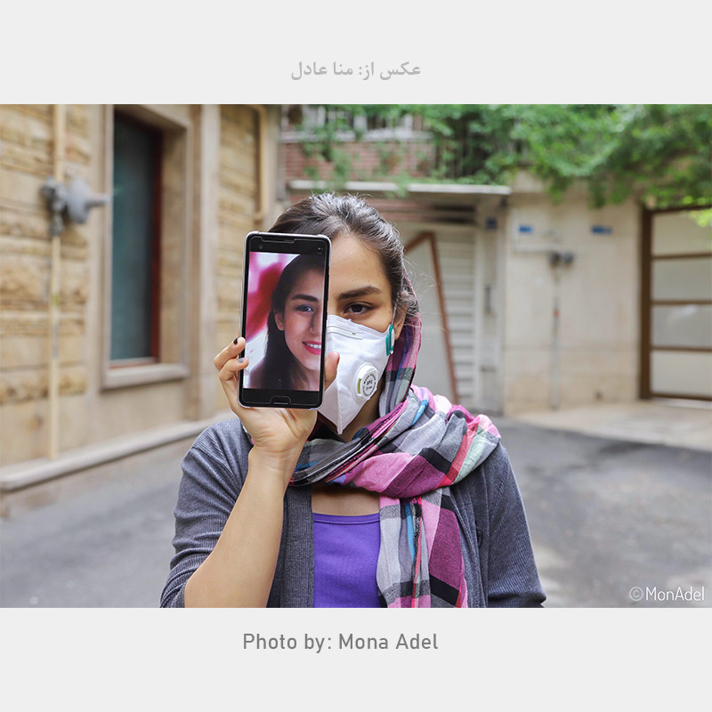 تصاویری از افراد که عمدتا خانم هایی هستند که ماسک بر چهره دارند و تلفن همراهی در دست گرفته اند. در صفحه تلفن همراه ، تصاویر بدون ماسک آنها به نمایش درآمده است. تصاویری که با یک لبخند همراهند.